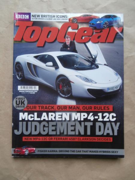 Top Gear 3/2011 Fisker Karma,BMW F12,A6,MiTo TCT,IS200d, Freelander,VW XL1,508,Saab 9-5,300C,Explorer,Nissan Note, Renault Laguna, VW Passat,Outlander, A1 & Quattro,gebrauchtes englisches Heft.