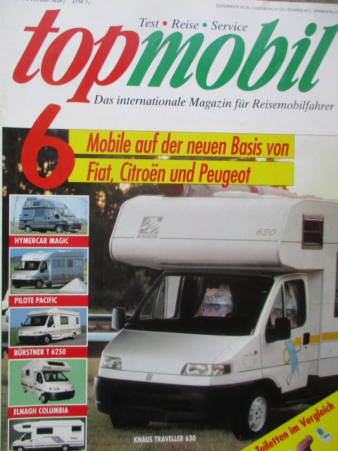 topmobil 2/1994 Winnebago Minnie Winnie 524RC vs. Frankia A730RD,CS-Rhodos,Karmann Cheetah II S,S.I.R. Mobil 5900 F,gebrauchtes Heft.
