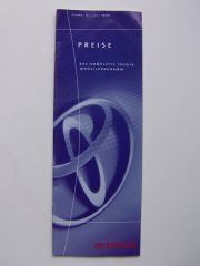 Toyota Preisliste Modellprogramm 1.7.1999, gebrauchter Zustand, alle Modelle.