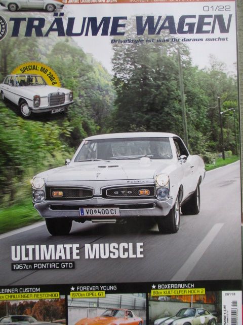 Träume Wagen 1/2022 Special Mercedes Benz 200 Strich Acht W114/115,67er Pontiac GTO,70er Challenger Restomot,70er Opel GT,80er Porsche 911,40 Jahre Lamborghini Jalpa,gebrauchtes Heft.