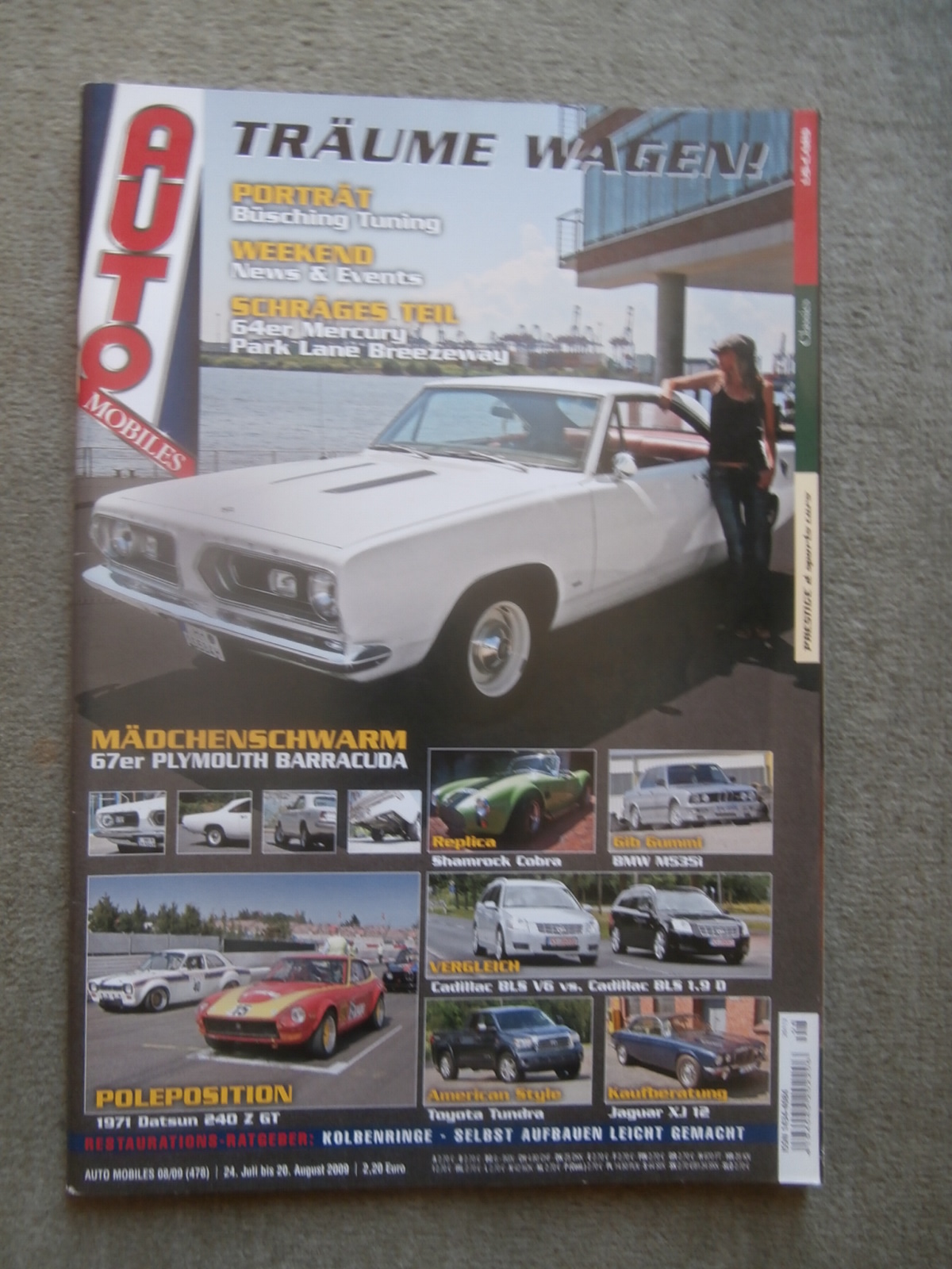 Träume Wagen 8/2009 67er Plymouth Barracuda,Shamrock Cobra,BMW M535i E28,Cadillac BLS V6 vs. BS 1.9d,