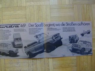 Tundra 469 Geländewagen Prospekt Deutsch NEU, Querformat, 4seiter, ähnlich dem Ural GAZ 469 mit techn.Daten, sehr selten hier bei uns.