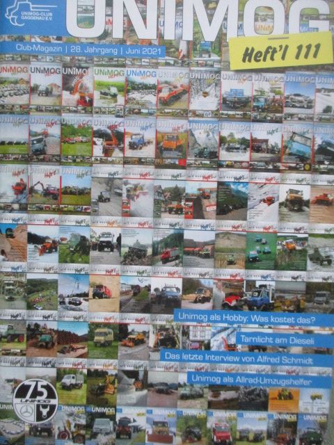 Unimog 6/2021,75. Augabe, 403 mit flacher Pritsche, Unimog 411 Ruhrkohle, gebrauchtes Heft.