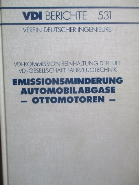 VDI Berichte Emissionsminderung Automobilabgase - Ottomotoren aus 1984, u.a. Einfluß des Verbrennungsablaufes auf die motorischen Kennwerte, Der Dreiwegekatalysator, Wege zu niedrigeren Abgaswerten, Einfluß winterlicher Temperaturen auf das Emissionsverhalten vonpkw, Emissionsverhalten von Zweitakt-Otto-Kleinmotoren, Überprüfung dere Abagasemissionen des Einzelfahrzeuges in Kundenhand, Ecotronic, Abgasmessungen an Ottomotoren,der individuelle Einfluß des Fahrers auf das Emissionsverhalten des Fahrzeuges, 509 Seiten stark, guter Zustand