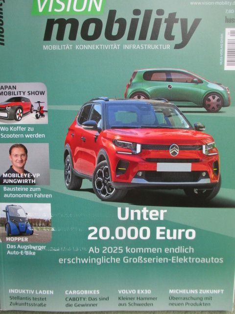 vision mobility 1-2024,Fahrberichte: Volvo EX30,Kia EV9, MG4 XPower und Trophy Extended Range, Opel Corsa Electric, Peugeot E-208/E-308,Citroen e-C3,Cupra Born im Vergleich mit VW ID.4,Toyota Prius,Maserati Grecale GT,Mercedes Benz EQE SUV 350+,Mini Cooper SE Cabrio,DS7 E-Tense 4x4 300,Fahrbericht Hopper,,neuwertiges Heft.