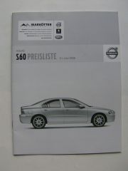 Volvo Preisliste S60 Juli 2008 NEU, sehr ausführlich.