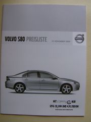 Volvo Preisliste S80 November 2009,neu.