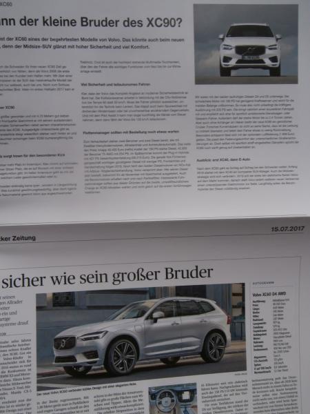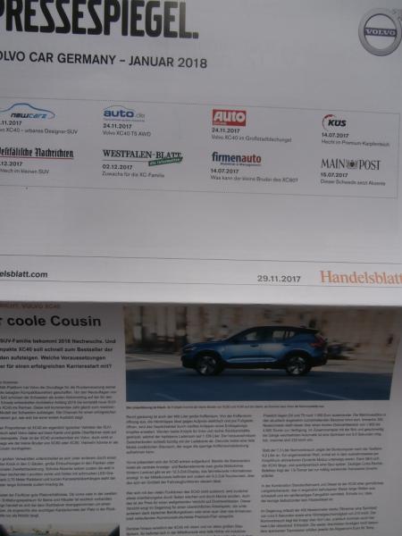 Volvo Pressespiegel Januar 2018 XC40 XC60 A3 Format auf A4 gefaltet, 8 Seiten stark, sehr selten.