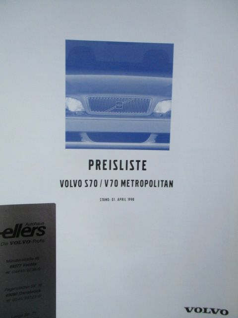 Volvo S70 V70 Metropolitan April 1998, 6 Seiten stark,A4 Format, Einzelstück