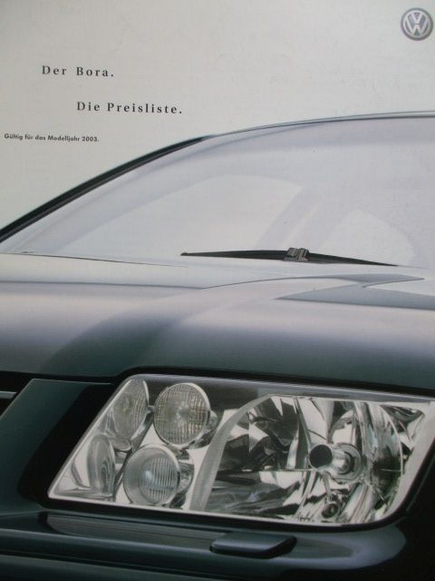 VW Bora Preisliste November 2002,Trndline,Comfortline,Highline und V6,12 Seiten stark,Modelljahr 2003