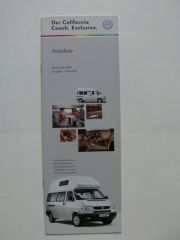 VW Preisliste California Coach.Exclusive T4 Mai 1999 NEU,