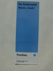 VW Preisliste Sharan Family März 1999 7M8 alle Modellversionen.