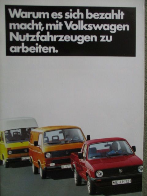 VW Warum es sich bezahlt macht,mit VW Nutzfahrzeugen zu arben Caddy T3 LT katalog März 1984 NEU,10 Seiten stark.